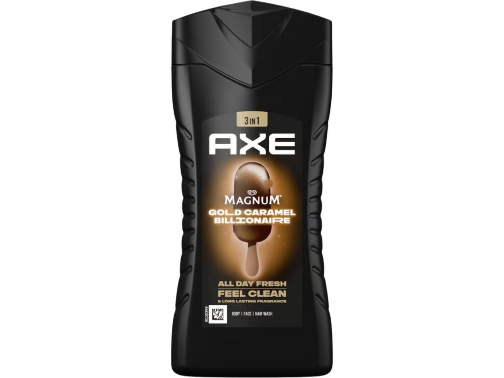 Sprchový gél Magnum Gold Caramel Billionaire značky Axe osviežuje a dodáva zvodnú vôňu čokolády, karamelu a čaju chai. Okrem toho sprchový gél obsahuje novú technológiu Skin Active Technology – rastlinné prebiotikum, ktoré podporuje dobré baktérie kože a redukuje baktérie kože spôsobujúce nepríjemný zápach. Gél navyše poskytuje upokojujúcu hydratáciu pre optimálnu starostlivosť o telo. Ideálne pre každodennú sprchu a zvodný začiatok dňa.