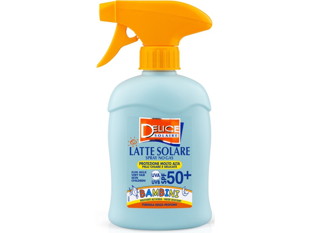 Delice Solaire Opaľovacie mlieko pre deti SPF50+ poskytuje veľmi vysokú ochranu pred slnečnými lúčmi. Je vhodný aj na citlivú pokožku dospelých . Jemná textúra sa rýchlo vstrebe, nelepí a zanechá pleť príjemne hydratovanú. Obsahuje výťažok zo slamienky a vitamín E, ktoré pokožku upokojujú a zmierňujú prejavy starnutia. Mlieko je vodeodolné a bez parfumácie .