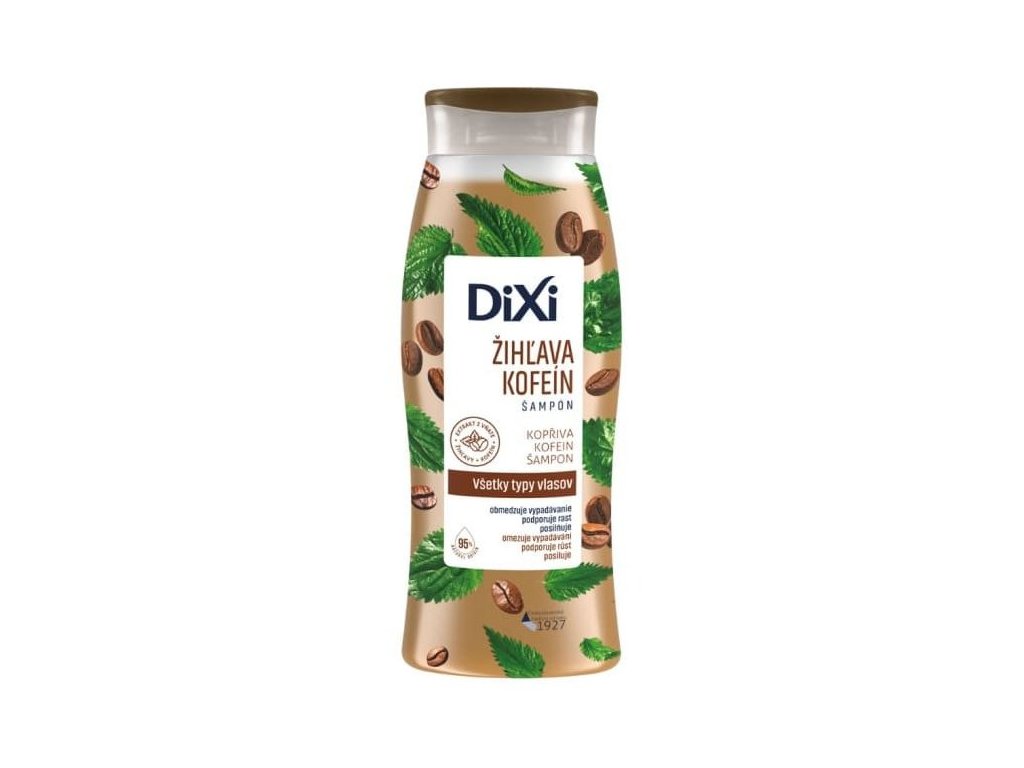 Dixi Žihľava - Kofeín šampón pri pravidelnom používaní obmedzuje vypadávanie vlasov, podporuje ich rast, posilňuje vlasy a napomáha udržiavať ich zdravý vzhľad. Obsahuje 95% zložiek prírodného pôvodu.