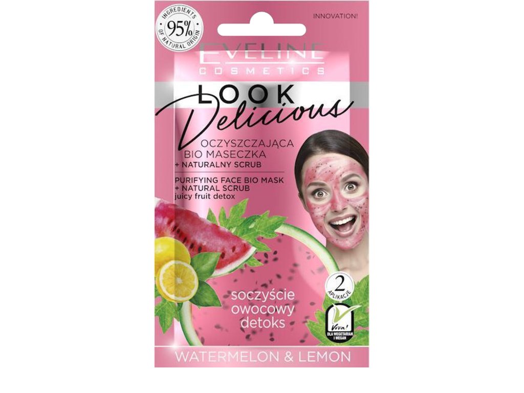 EVELINE Look Delicious čistiaca BIO maska s prírodným pílingom - Melón & Citrón