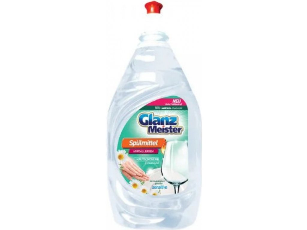 Glanz Meister Sensitive Hypoallergen prostriedok na umývanie riadu je vysoko koncentrovaný a efektívny prostriedok určený na ručné umývanie riadu. Účinne – rozpúšťa tuk aj v studenej vode. Chráni ruky pridaním bylín. Môžu používať aj ľudia s citlivou pokožkou. Nesuší ruky a zanecháva príjemnú vôňu. Riady sú po umytí bez šmúh a bez mastnoty. Je tak koncentrovaný a účinný, že ho dokonca používajú aj v dielňach na umývanie silno znečistených rúk od oleja a podobných nečistôt. Keďže je šetrný voči pokožke, nespôsobuje jej vysušovanie.