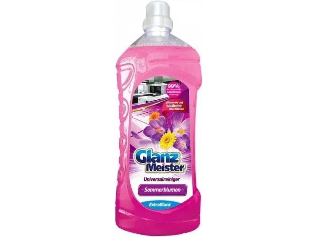 Univerzálny čistiaci prostriedok Glanz Meister Letné kvety účinne čistí všetky typy umývateľných povrchov a podláh – dlažbu, laminát, PVC, linoleum aj kameň.